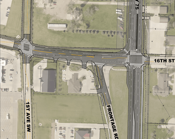 One intersection receiving attention is 16th Street SW, which links Highway 75 to the commercial area to the west. The proposed design includes additional lanes on that block of 16th Street, preparing for growth in traffic in that area as it continues to develop.