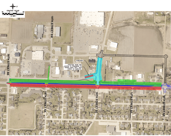 Phase 1 of construction is tentatively set to start in summer 2023, stretching from 20th St. S to about 13th St. S. This stage also includes the reconstruction of about a block of 16th St. SW to make safety improvements and adding a stoplight at 20th St. S. This portion of the project is estimated at $11 million, with the City’s share at $1.8 million, including utility work.