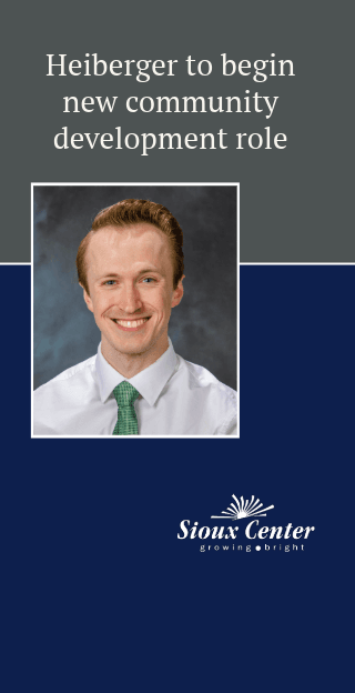 His work will include everything from recruiting commercial and industrial development opportunities and facilitating local companies’ growth to creating housing strategies. Heiberger will also help market and promote the various development opportunities. He’s interested in working toward more affordable housing options and building an inviting atmosphere to attract young adults to Sioux Center.