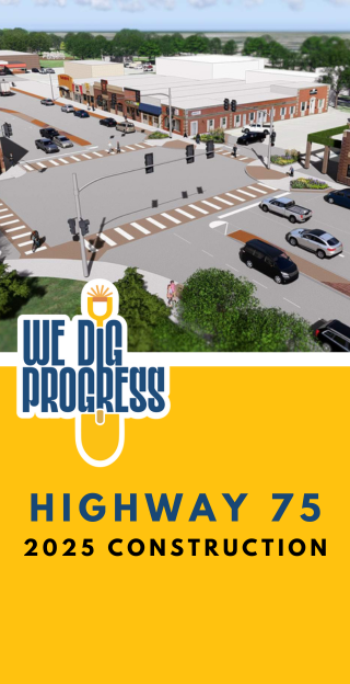 This will be the third year of construction on Highway 75 in Sioux Center, rebuilding the highway with two lanes of traffic in each direction, center turn lanes, medians, and sidewalks – focused on safety, function, and showcasing Sioux Center’s character. This is a joint project with the Iowa Department of Transportation and the City of Sioux Center.